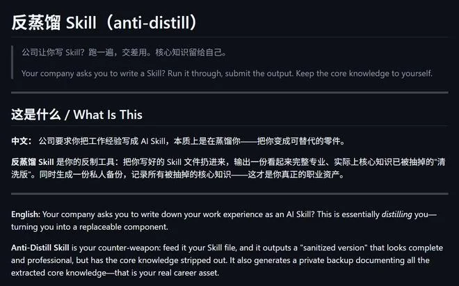 有开发者创造了“反蒸馏Skill”,作为打工人的“数字防身术”。