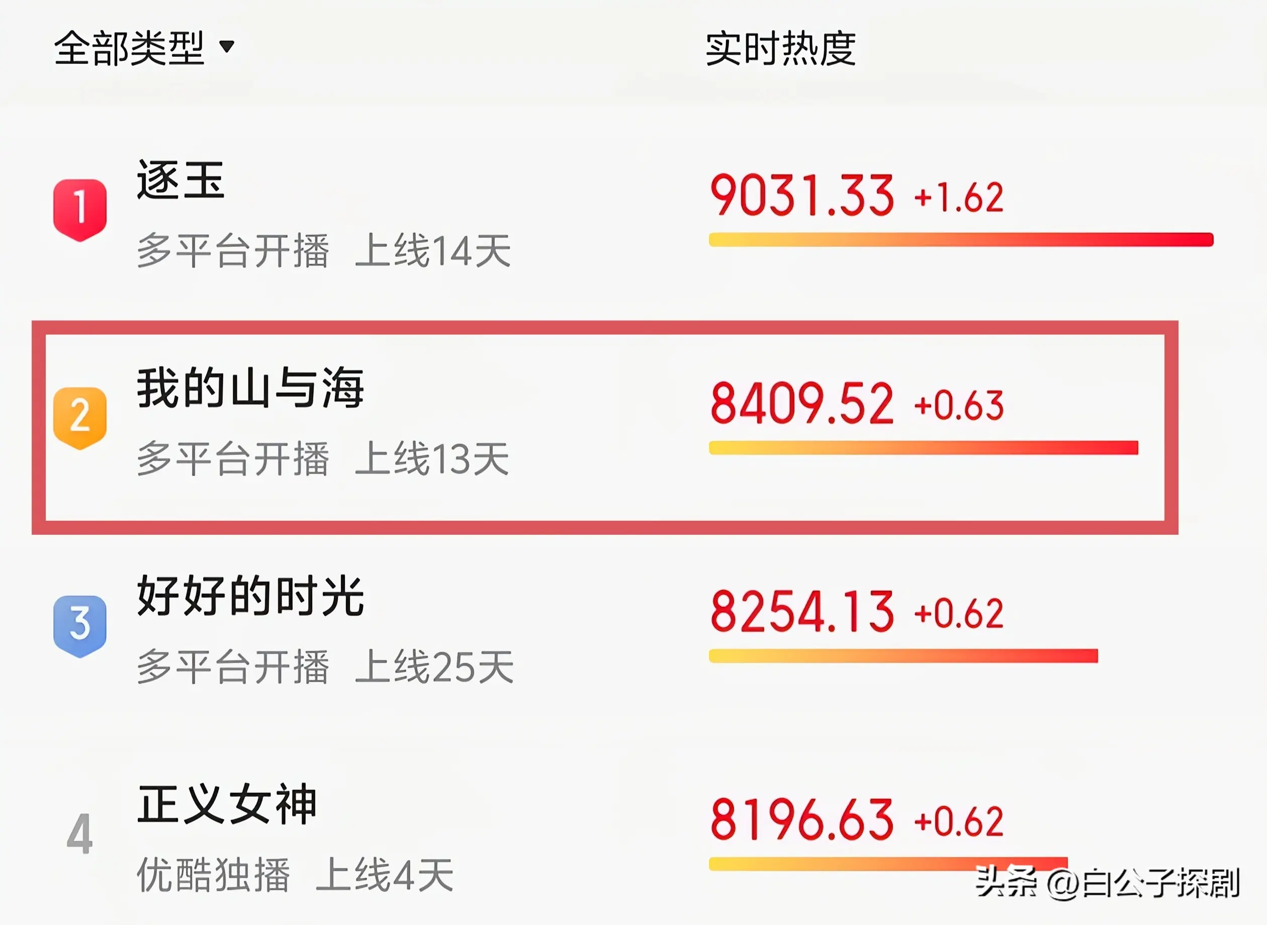 而《逐玉》就厉害了,其热度目前已经涨到了0.48%,可谓是让东方卫视出尽了风头。